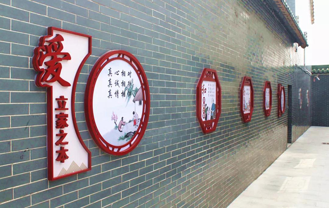 好家风文化长廊上的“爱、和、勤、俭、善”五大主题