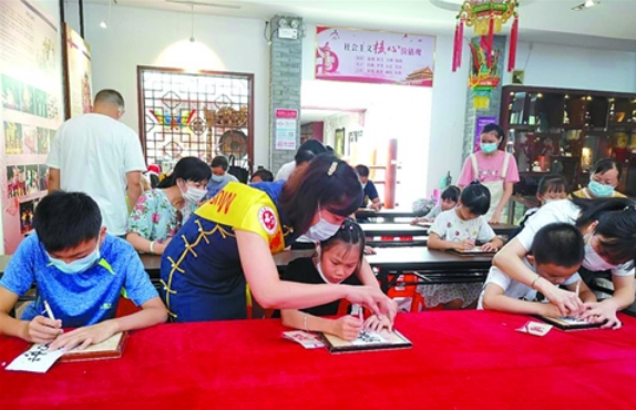 9日上午,由佛山市博物馆、佛山市非遗保护中心主办的2020年佛博坊·成长体验营之“佛山剪纸”手工艺制作课堂在佛山市非遗保护展厅举行。90分钟的课堂上,佛山剪纸市级非遗传承人陈嘉彦一边手把手指正孩子们的握刀姿势,一边细心地讲解佛山剪纸的技巧,孩子们边玩边学,开阔眼界的同时收获了佛山非遗知识。