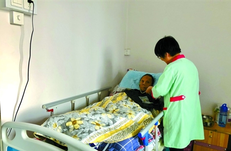 在大爱健康养老服务中心内,一护工正在照顾老人。(资料图片)