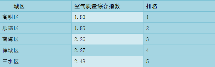 7月佛山空气质量成绩单出炉啦!五区空气质量哪里最好?请继续往下看!