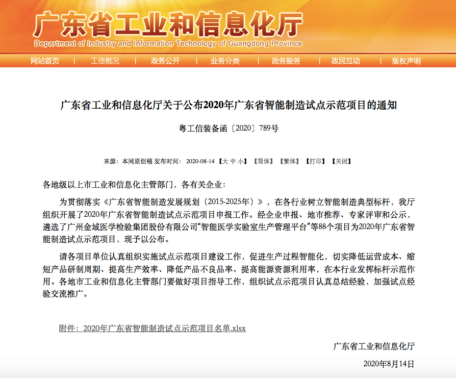 省工信厅于2020年4月启动2020年广东省智能制造试点示范项目申报工作,经企业申报、地市推荐、专家评审和公示环节,在全省共遴选了88个项目。