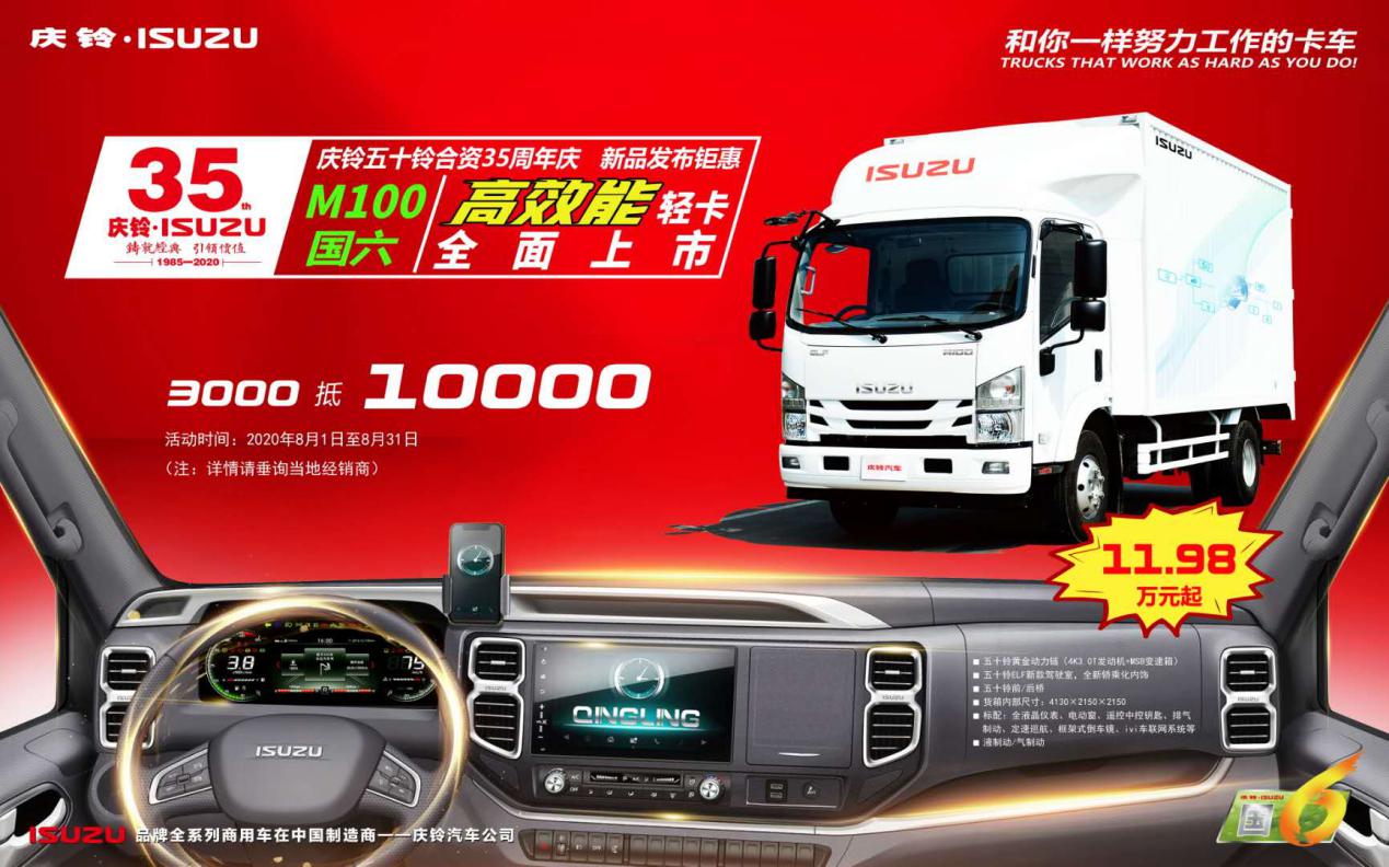 不仅如此,在庆铃与五十铃合作35周年庆典之际,为感恩用户多年的支持与陪伴,8月期间凡购买庆铃五十铃M100轻卡的用户即可享受“3000抵10000元”的超值礼包,仅需11.98万元起这款世界水准的高效能轻卡就可开回家。