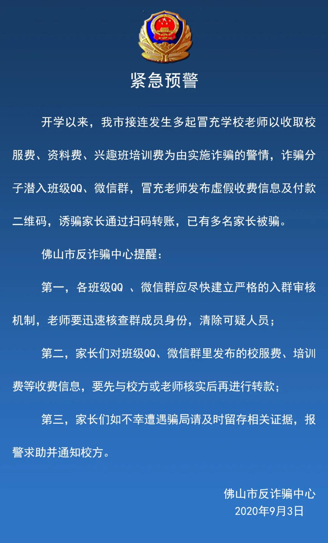 新学期刚开始佛山已有多名家长被潜伏在班群内的骗子诈骗