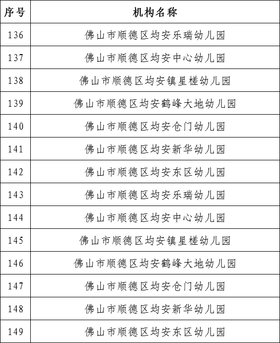 根据《佛山市教育局佛山市卫生健康局关于印发<佛山市幼儿园托班开设与管理暂行办法>的通知》(佛山教育〔2022〕107号)和《顺德区教育局顺德区卫生健康局关于做好幼儿园托班开设工作的通知》(顺教〔2022〕200号)精神,由各镇街教育办牵头,会镇街卫健办(社区卫生服务中心)组成联合审查工作组,对申请开设托班的幼儿园进行实地察看和材料审查。经审查,共有149所幼儿园符合托班开设条件。