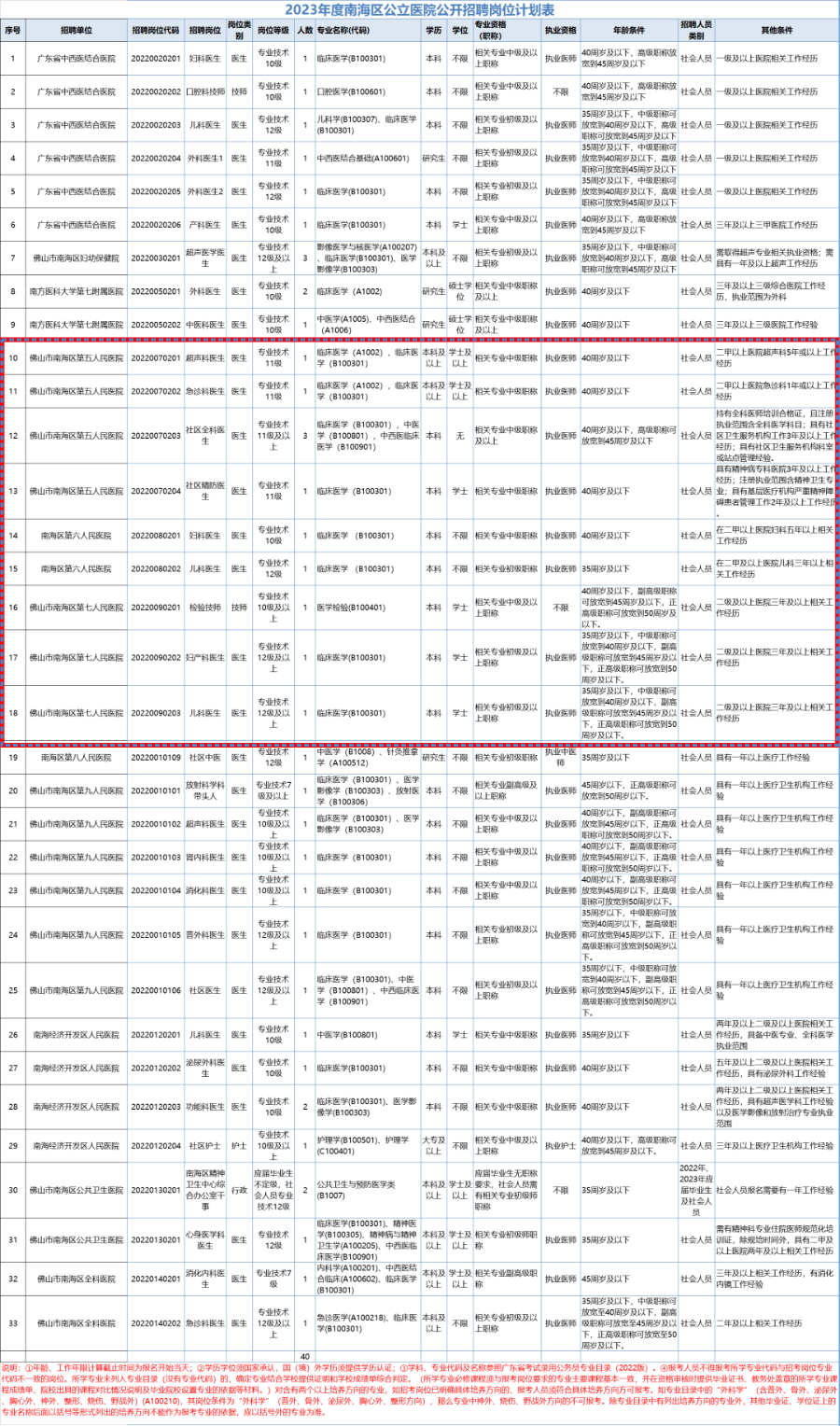 佛山市南海区下辖的11家公立医院,因工作需要,公开招聘事业单位聘用制工作人员40名,其中大沥三所公立医院招11人。具体招聘岗位及岗位报考条件详见下图: