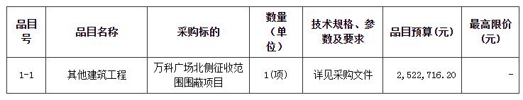 万科广场北侧征收范围围蔽项目竞争性磋商公告