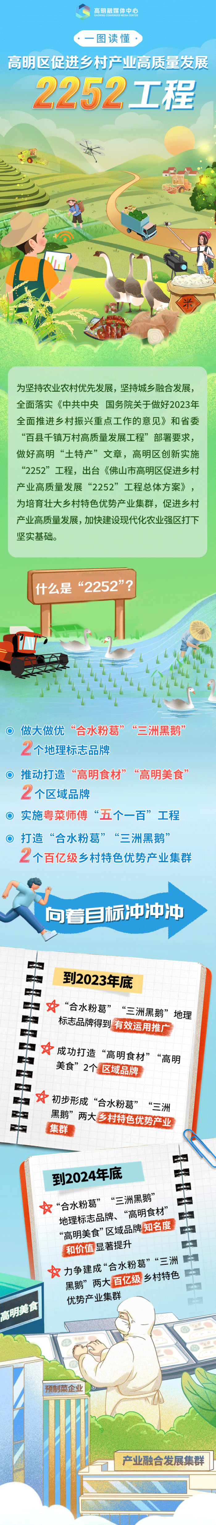 会上还同步发布了《佛山市高明区农产品品牌推广实施方案》《佛山市高明区2023年“粤菜师傅”百村名厨名菜争霸赛活动方案》《佛山市高明区乡村振兴“粤菜师傅”工程“三星”孵化培养计划实施方案》《佛山市高明区优质农产品一二三产融合发展工作方案》等系列配套文件,对“2252”工程进行细化实化目标化。