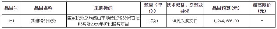 项目名称:国家税务总局佛山市顺德区税务局杏坛税务所2023年护税服务项目