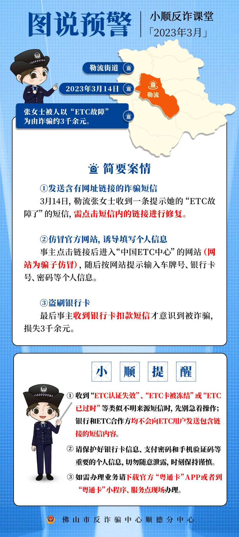 骗子冒充ETC中心、高速管理中心、交管12123等机构,以短信的形式,向广大居民群众发送内容为“ETC被停止使用,需要立即进行登录验证”的虚假短信。