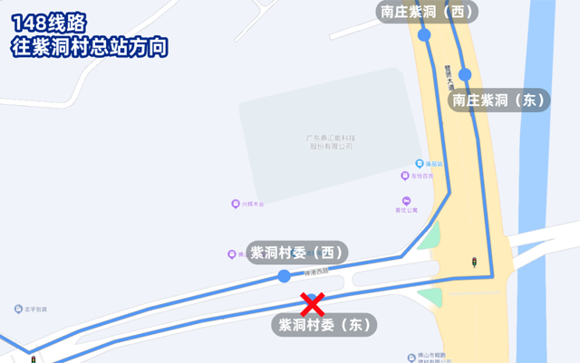 增加停靠:南庄紫洞(东)、南庄紫洞(西)、紫洞村委(西)站。