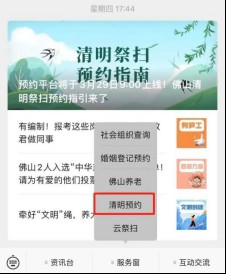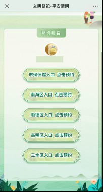 “佛山教育帮”点击后台菜单栏“精彩活动”→“清明预约”即可进入清明预约平台;