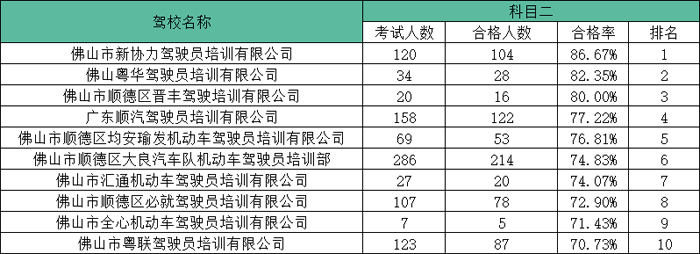02、科目二合格率前十名