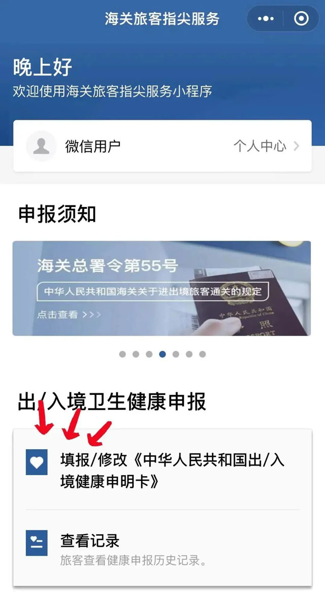 出入境的旅客需在出行前24小时内使用微信搜索“海关旅客指尖服务”小程序进行健康申报,并截屏保存申报码以便查验。口岸现场旅客较多,请务必提前截图保存,确保出行顺利。