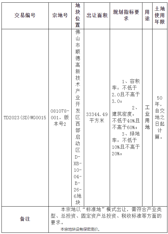 五、有意参与竞买者可于2023年3月28日后登录网上交易系统下载TD2023(SD)WG0015地块的《佛山市顺德区国有建设用地使用权网上挂牌出让文件》。