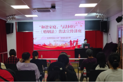 (图:3月9日,街道总工会、街道妇联在街道党群服务中心联合举办“和谐家庭,与法同行”--《婚姻法》普法宣传讲座。)