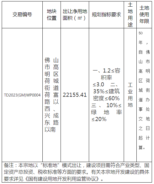 本块地其他规划指标和要求按《高明区土地使用规划条件》(佛规明设函〔2023〕0016)相关规定执行。