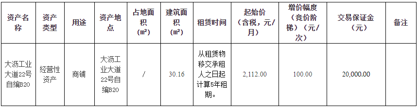 佛山市南海区大沥工业大道22号自编B20网上租赁竞投公告