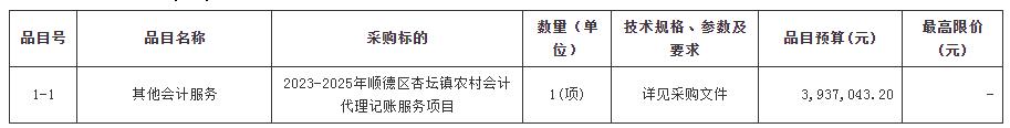 项目名称:2023-2025年顺德区杏坛镇农村会计代理记账服务项目