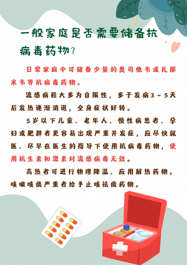 问:一般家庭中是否需要储备抗病毒药物?