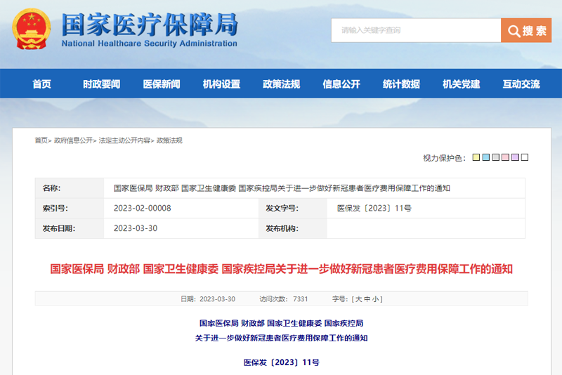 3月30日,国家医保局官网发布《国家医保局 财政部 国家卫生健康委 国家疾控局关于进一步做好新冠患者医疗费用保障工作的通知》。