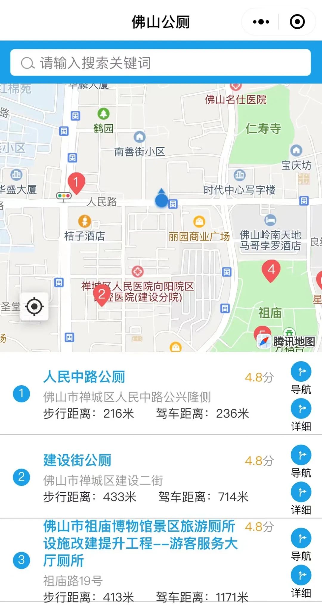 (三)精准施“厕”,一键便知。市城管执法局应群众之所需,急群众之所急,以需求、问题为导向,立足快速、精准,正式上线了“佛山公厕”小程序。截至目前,“佛山公厕”小程序已纳入市政公厕921座,使用小程序共11515人次。小程序能自动获取当前定位信息,自动推送周边最近的公厕,并提供一步导航到位。