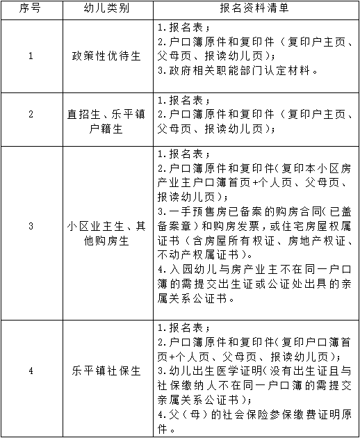 (以下简称“乐平镇户籍生”,以幼儿户口簿为准)