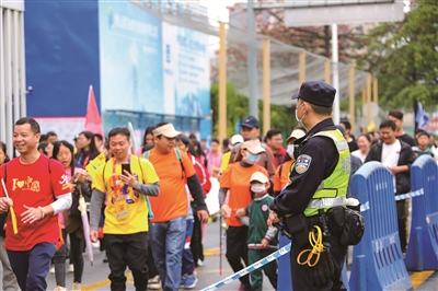 4月1日,美丽佛山·一路向前——2023佛山50公里徒步活动举行。在禅城,12万人在春天里用脚步丈量最美禅城。市民游客一路欢声笑语的背后,有一群人默默守护。来自公安、城管、卫健、市监、各镇街等部门、单位的工作人员和志愿者超过3000人,从清晨到黑夜,从起点到终点,全力护航佛山50公里徒步活动。