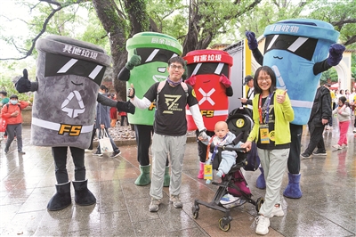 另外,城管部门还在中山公园开设活动摊位,设置转盘问答游戏、绘画创作等活动环节,宣传推广垃圾分类知识。最高达2米的“桶桶超人”来到现场,与市民展开热烈互动,看到陆续走入的徒步市民,“桶桶超人”热情上前与市民击掌握手,为徒步的市民加油。
