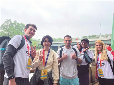 在徒步人群中,一支外国人队伍尤为显眼。来自摩洛哥的安格斯说,沿途的美好风景、人们的灿烂笑脸,给他留下了深刻印象。“这个活动很热闹,很有趣。”安格斯是一名在佛山工作的外教,提到在这里打拼发展的感受,兴奋地说,“我太喜欢佛山这个地方了,每隔几月就会变漂亮一点,城市非常有活力,人们都很友善。”