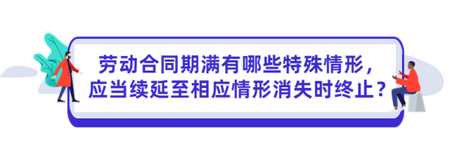 根据劳动合同法,劳动合同期满,有以下情形之一的,劳动合同应当续延至相应的情形消失时终止: