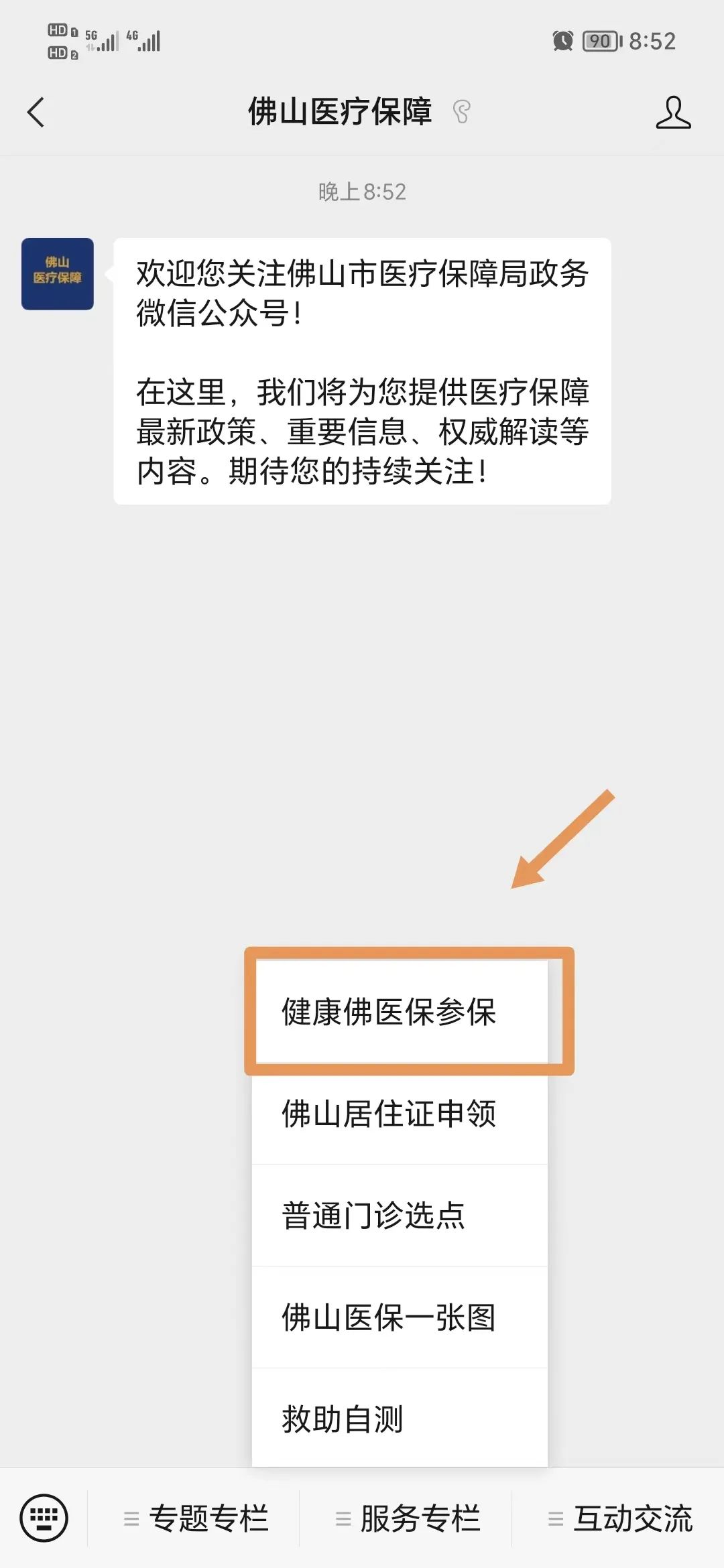 关注“佛山医疗保障”公众号,点击“服务专栏”—“健康佛医保参保”入口”进行参保。