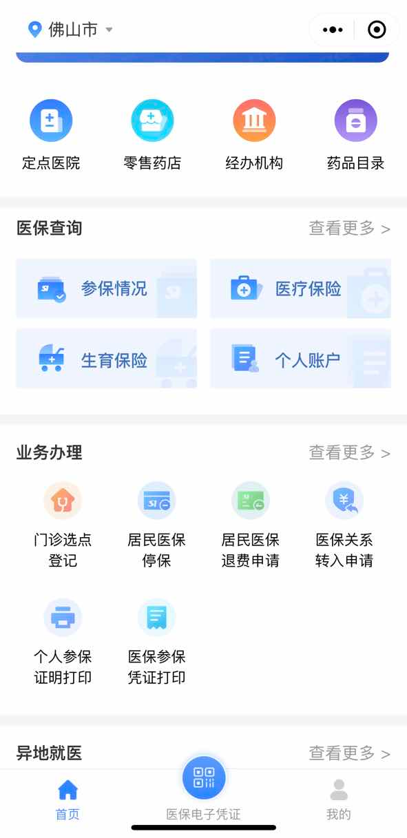 登录广东省政务服务网(http://www.gdzwfw.gov.cn)→个人服务→按部门分类→佛山市社会保险基金管理局→基本医疗保险关系转移接续→出具《参保凭证》→在线办理→上传相关资料。