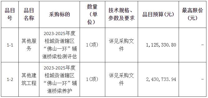 合同包1(2023-2025年度桂城街道辖区“佛山一环”辅道桥梁检测评估和养护项目):