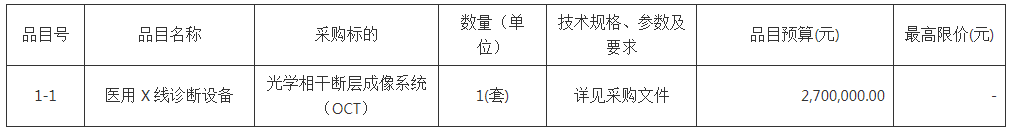项目名称:广东省人民医院南海医院(平洲医院)心血管病大楼建设项目提前购置部分医疗设备-光学相干断层成像系统(OCT)