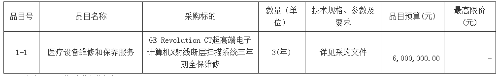 项目名称:GERevolutionCT超高端电子计算机X射线断层扫描系统三年期全保维修