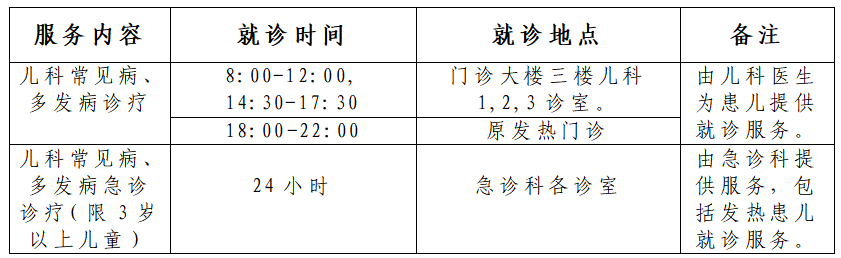 1. 除日间门诊外,每天18:00到22:00,由儿科医生出诊,提供夜间儿科门诊服务,地点位于原发热门诊处。