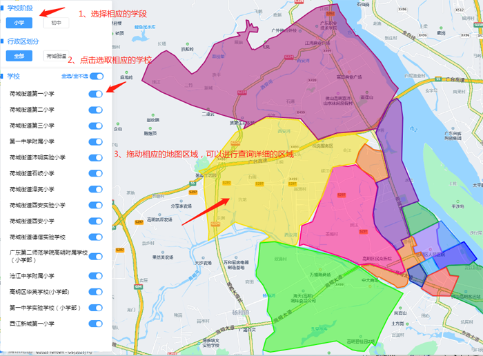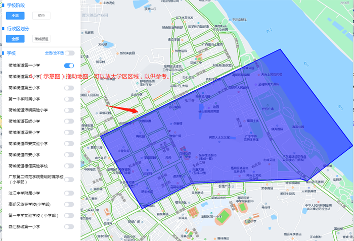 链接显示仅为区域示意图,具体、准确的学区区域范围需结合上述划分说明匹配。
