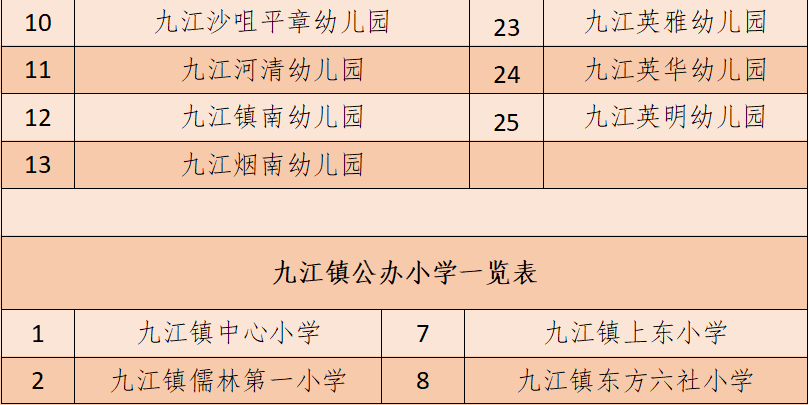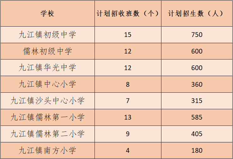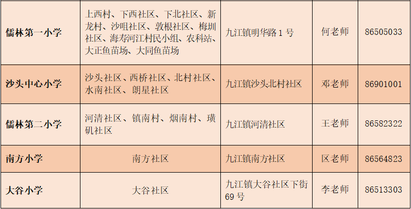 2.学位安排原则:户籍生实行按户籍所在地定向招生,根据《九江镇义务教育阶段公办学校招收适龄儿童、少年所属区域划分一览表》,按户籍区域划分相对就近入读。