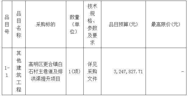 高明区更合镇白石村主巷道及排洪渠提升项目采购项目的潜在供应商应在广东省政府采购网https://gdgpo.czt.gd.gov.cn/获取采购文件,并于2023年4月18日9时30分(北京时间)前提交响应文件。