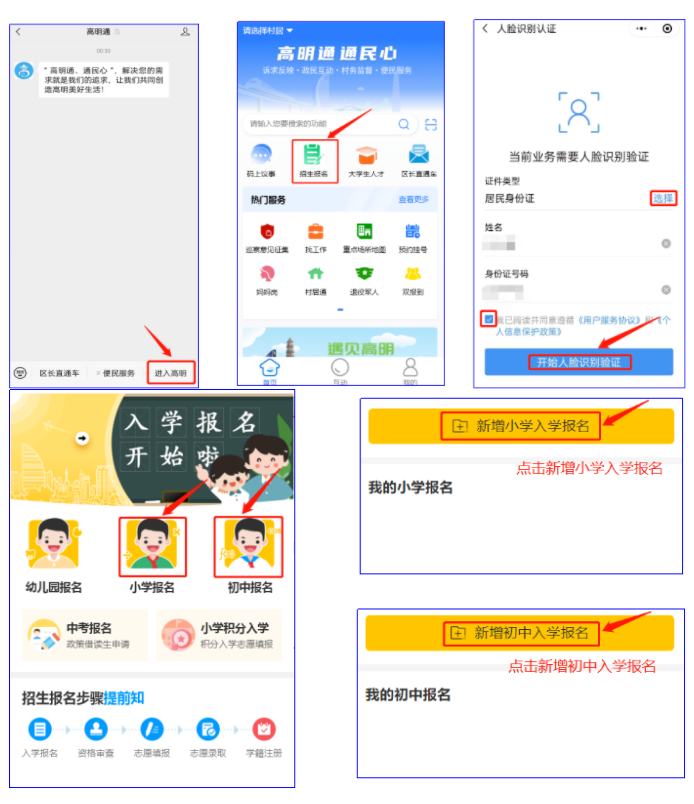 注意:普通借读生无需在系统报名,请留意“高明政法”“高明教育”微信公众号公布的积分入学方案,按规定时间办理积分。