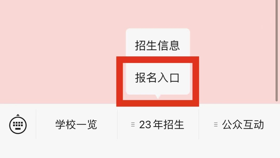 在“高明教育”微信公众号(区教育局官方微信公众号)菜单栏,点击【23年招生】的【报名入口】进入系统。