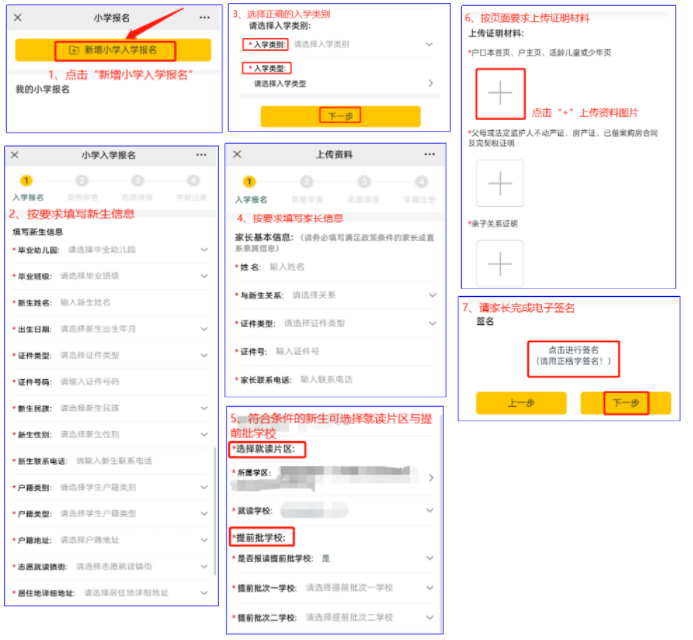 1.点击“新增小学入学报名”或“新增初中入学报名”。
