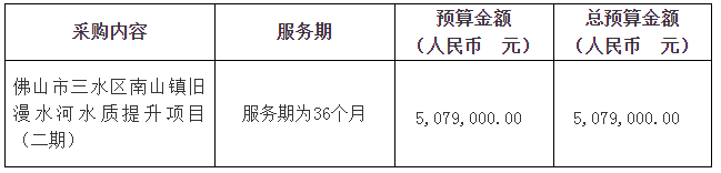 佛山市三水区南山镇旧漫水河水质提升项目(二期)招标公告