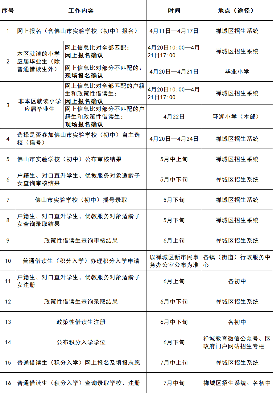 通过积分入学排名取得入读禅城区公办初中资格的普通借读生于7月中上旬进行网上报名(具体时间安排以“禅城教育”微信公众号公布为准)。