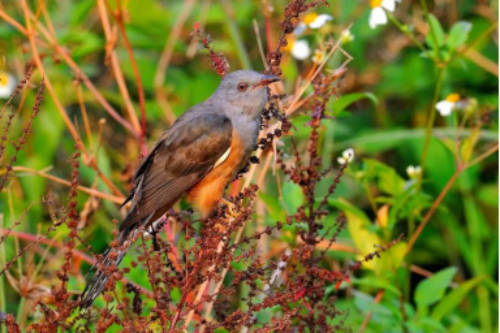 嘴形是侧扁、尖削的。雄鸟头、颈和上胸灰色,背至尾暗灰色,尾具白色端斑。胸以下淡棕栗色,上下体均无横斑。雌鸟通体为灰黑色和栗色相间。喜开阔林地、次生林及农耕区,有时也出现于果园、公园、庭园和路旁树上。性格较其它杜鹃活跃,常不断地在树枝间飞来飞去。繁殖期间喜欢鸣叫,常整天鸣叫不息,尤其是阴雨天鸣叫频繁,叫声为八声一度,鸣声尖锐、凄厉,故有哀鹃及雨鹃之名。