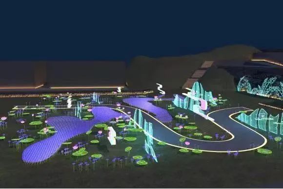 2018年,广州市灯光作品《雨打芭蕉》参展里昂国际灯光节。