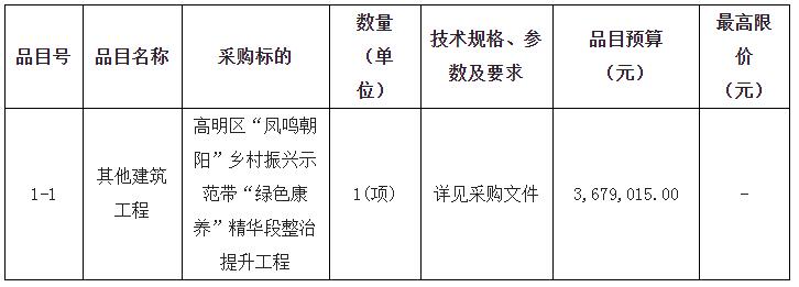 合同包1(高明区“凤鸣朝阳”乡村振兴示范带“绿色康养”精华段整治提升工程):