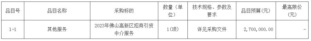 项目名称:2023年佛山高新区招商引资中介服务