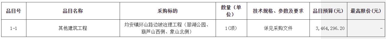 品目号 品目名称 采购标的 数量(单位) 技术规格、参数及要求 品目预算(元) 最高限价(元)