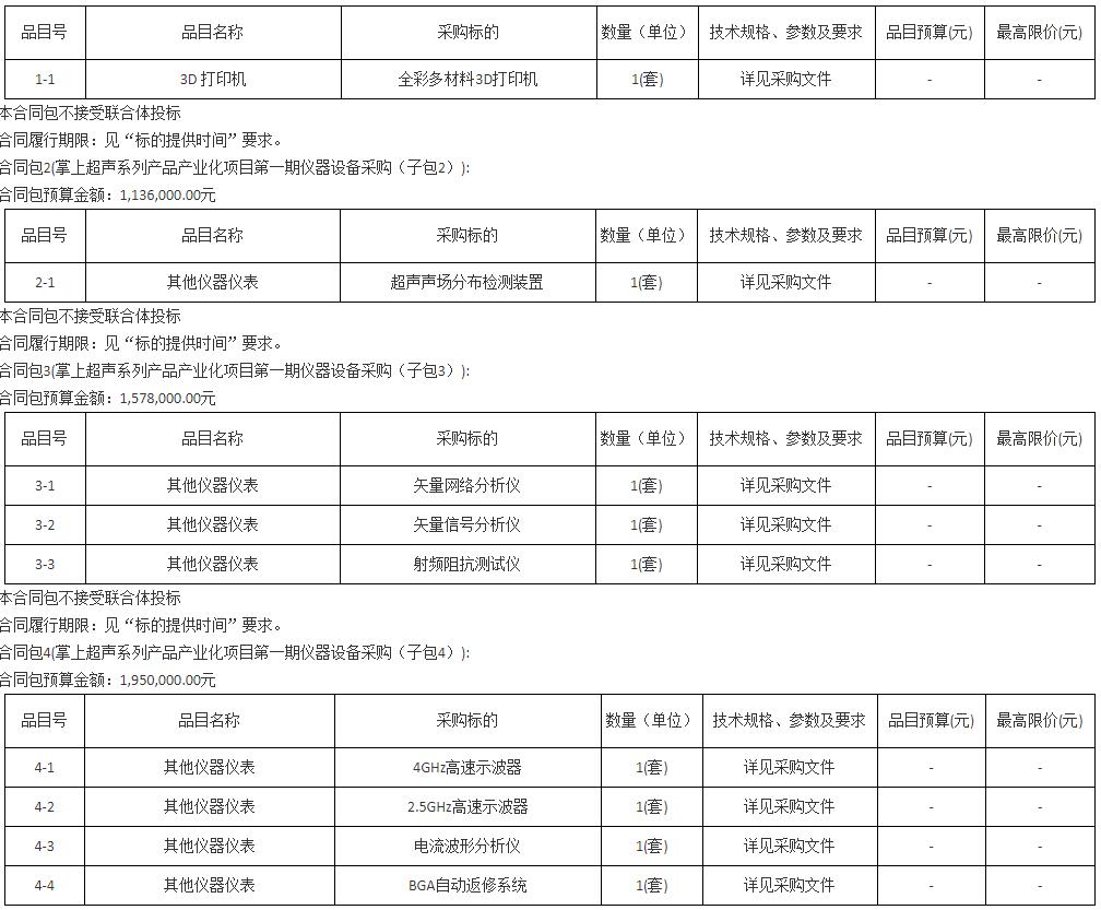 合同包1(掌上超声系列产品产业化项目第一期仪器设备采购(子包1)):